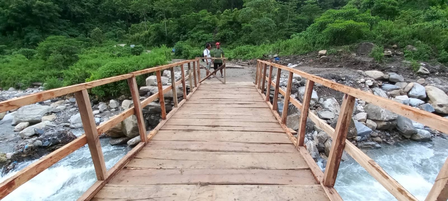 गाउँलेकाे अथक प्रयासमा भाचाेक खाेलामा अस्थायी काठेपुल निर्माण सम्पन्न