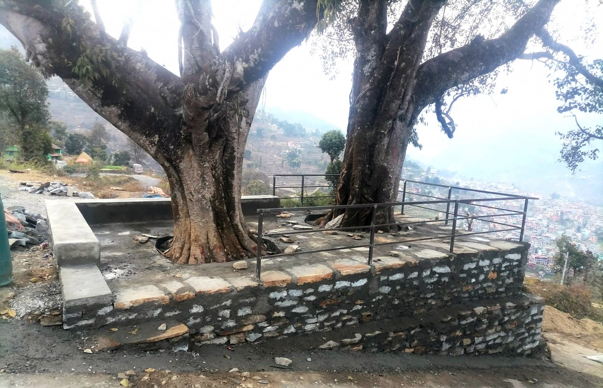 पुर्खाकाे चिनाेकाे रूपमा रहेकाे ऐतिहासिक थापाकाे चाैताराे पुनर्निर्माण