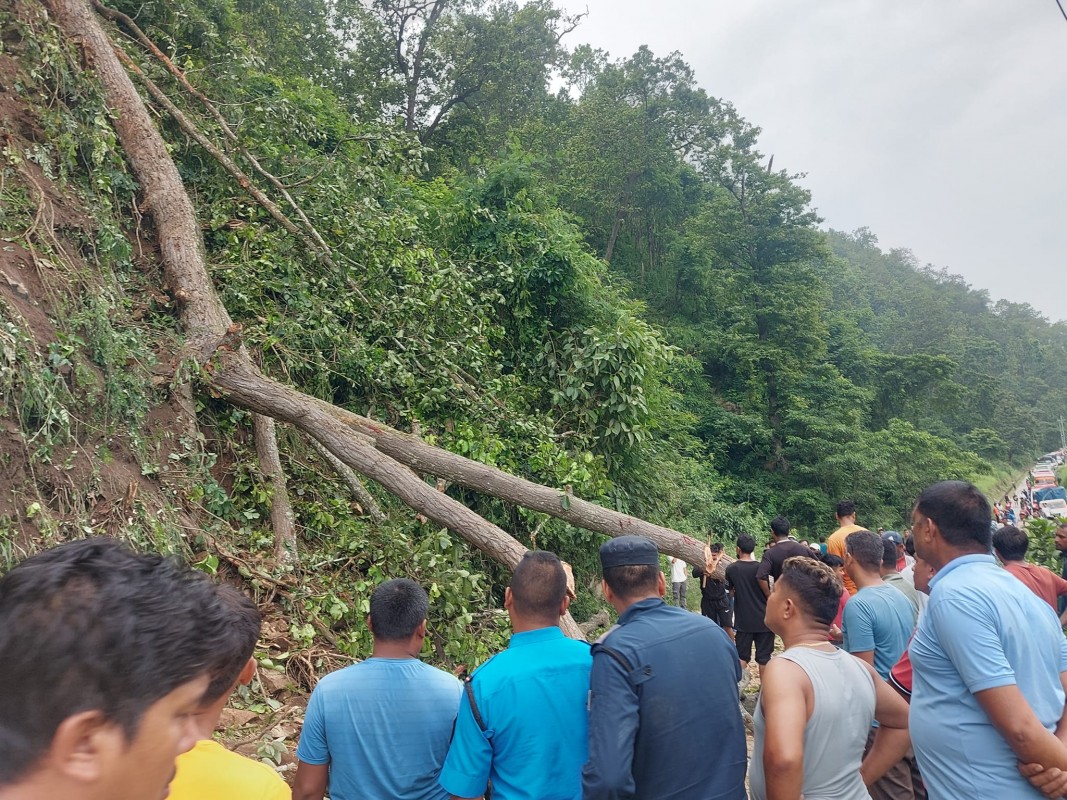 सडकमा रूख ढलेपछि डुम्रे बेसीशहर सडक अबरूद्ध