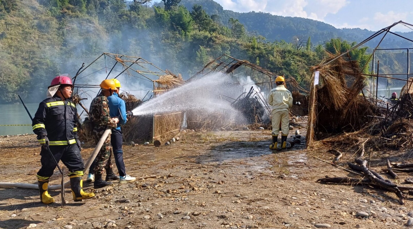 मानिसहरु घरबाहिर निस्केर कराउँछन् । एउटा दुईटा हुँदै कयौं घर टहरामा आगो लाग्छ । कोही आगो निभाउन लाग्छन्, कोही घरभित्र फसेकाहरुलाई बाहिर निकाल्न खोज्छन् ।