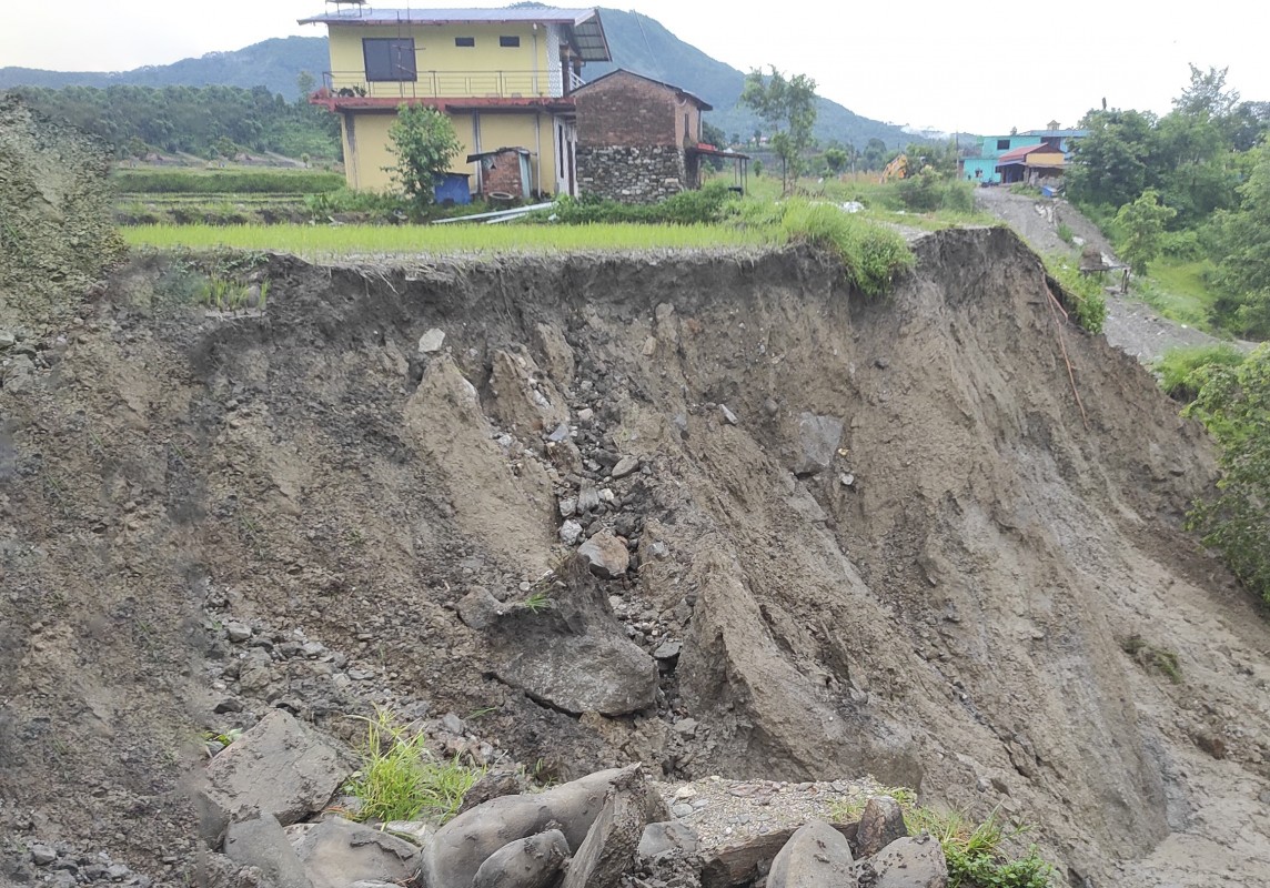 पहिरोले त्यहाँका तीनवटा घरमा जोखिम बढेपछि ठेकेदारले प्लाष्टिक ल्याएर छोपिदिए पनि केही हदसम्म जोखिम कम भए पनि ती घरमा बस्न सक्ने अवस्था नरहेको वडाध्यक्ष रेग्मीले बताए । उनले पहिरोले तानेको जमीनको एकीन नापजाँच नगरिए पनि करीब २ सय मिटर लामो पहिरो खसेको उनले जानकारी दिए । उनले पुलका कारण भएको क्षतिपूर्ति र सडकको मर्मत लागि वडा कार्यालय वा नगरपालिकाको बसमा नरहेकाले सम्बन्धित निकायमा जानकारी गराइएको बताए ।