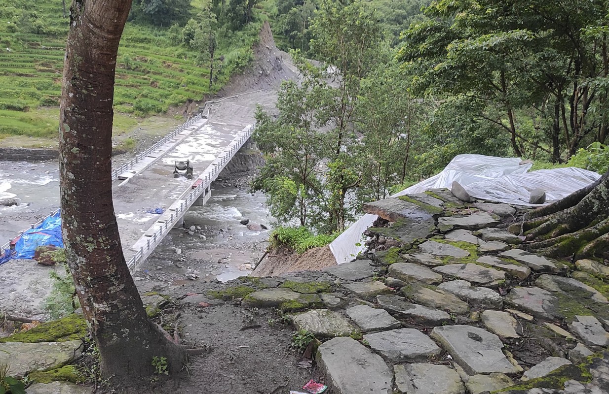 सुन्दरबजार, साउन १४ गते । लमजुङको सुन्दरबजार र तनहूँको भानु नगरपालिका जोड्न पाउँदीखोलामा निर्माणाधीन मोटरेबल पुल निर्माण नसकिँदै धरापमा परेको छ । बर्षाका कारण पुलको लमजुङतर्फको भागमा पहिरो खसेपछि पुलसंगै त्यहाँका केही घर धरापमा परेका छन् ।