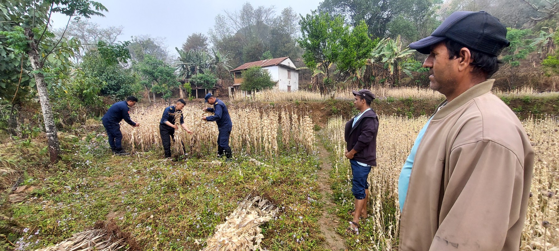 उक्त स्थानमा अफिमको खेती गरिएको भन्ने सूचनाका आधारमा जिल्ला प्रहरी कार्यालय लमजुङबाट खटिएको प्रहरी टोलीले ठूलो परिमाणमा अफिमका बोट र अफिमको चोप सहित बर्ष २६ का हिमाल लामा थिङलाई गत चैत ११ गते पक्राउ गरेको हो ।
