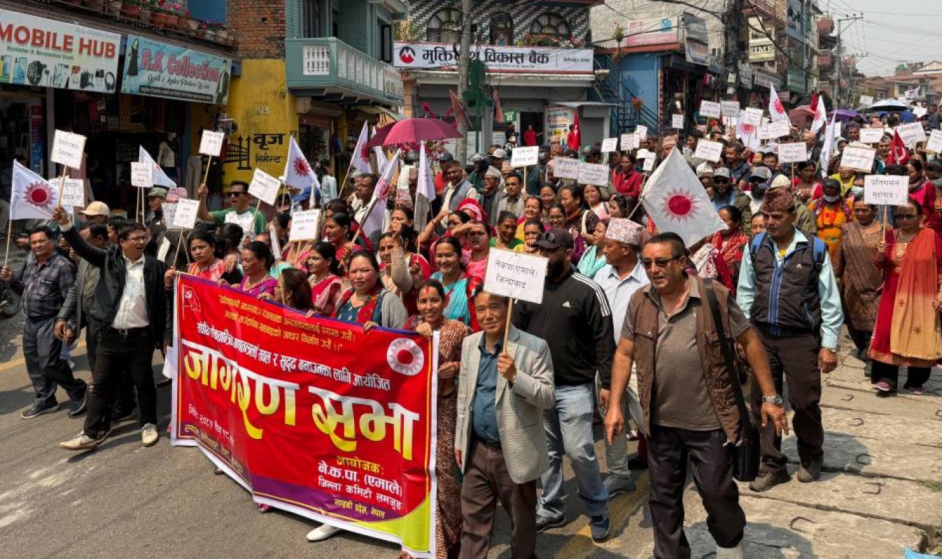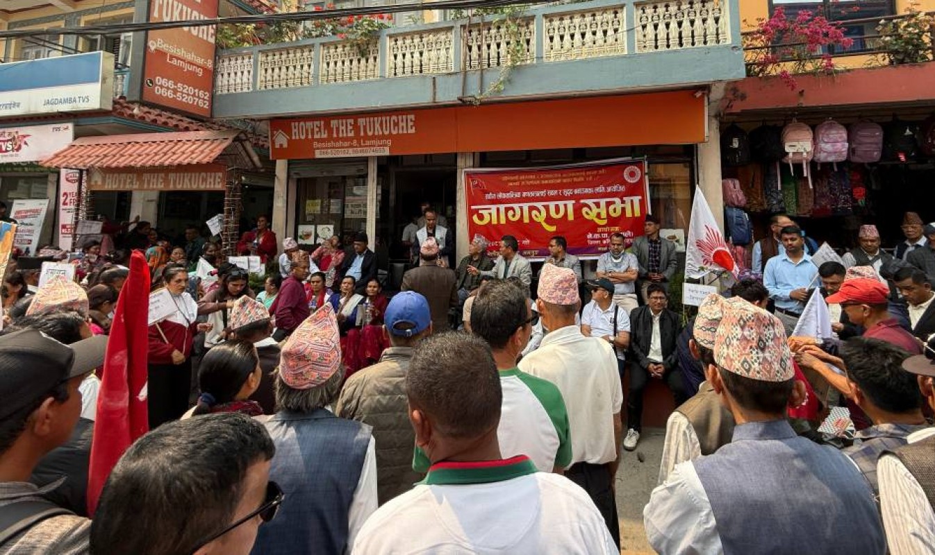 नेकपा एमाले जिल्ला कमिटीको आयोजनामा बेसीशहरको मनाङे चौताराबाट जागरण जुलुस निस्केको थियो । गणतन्त्र जिन्दाबाद, प्रतिगमन मुर्दावाद, हिंसा हत्या र लुटपाट मुर्दावाद तथा जन्मसिद्ध श्रेष्ठता अस्विकार गरौं’ लगायतका नाराका साथ प्लेकार्ड र ब्यानर लिएको जुलुस बेसीशहर बजार परिक्रमा गरी शेराबजारमा पुगी जागरण सभामा परिणत भएको थियो ।