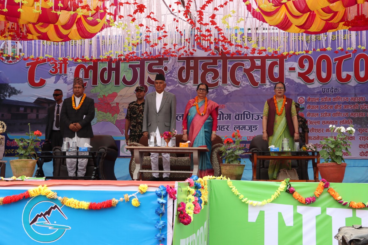 महोत्सवको उदघाटन गर्न बेसीशहर आइपुगेका राष्ट्रपति पौडेलले आजै लमजुङ भ्रमण बर्ष २०८१ को समेत शुभारम्भ गर्दै विश्वमै उत्कृष्ट पर्यटकीय पदयात्राको ख्याति कमाएको अन्नपूर्ण पदयात्रा मार्गको प्रवेशद्वार भएका कारण लमजुङले आवश्यक सुविधा र पूर्वाधार खडागरीे पर्यटन ब्यवसायबाट लाभ लिन सक्ने प्रशस्त सम्भावना रहेको चर्चा गरे ।