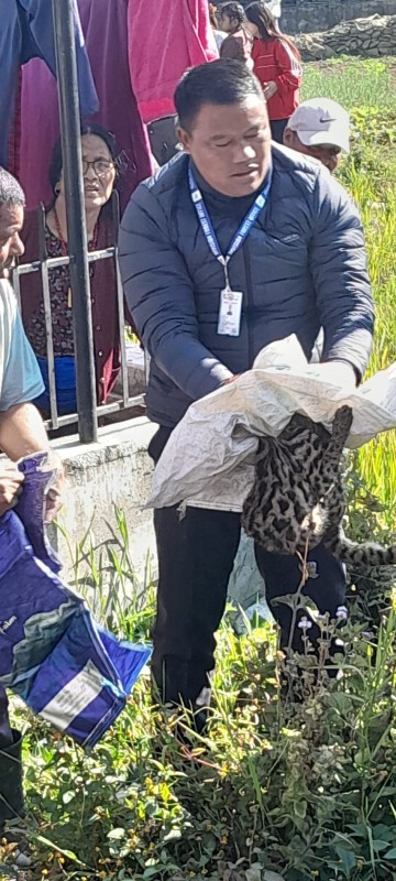 चरीबाघ नियन्त्रणमा लिएपछि खाेरमा राखि उसकाे प्राकृतिक बासस्थानमा लगेर छाडिएकाे छ ।