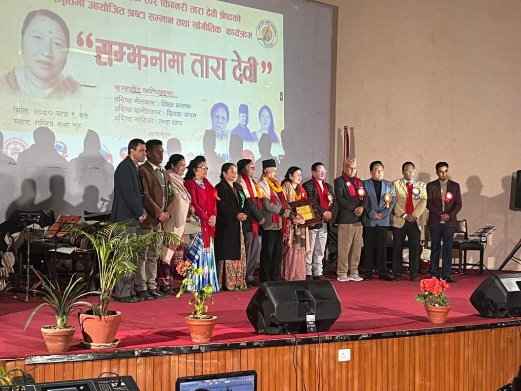 काठमाडौँ । तारा देवी स्मृति फाउन्डेसनले स्वरकिन्नरी तारादेवीकाे १८ औँ पुण्यस्मृतिका अवसरमा ‘सम्झनामा तारा देवी तथा स्रस्टा सम्मान’ कार्यक्रको आयोजना गरेको छ । काठमाडौँ महानगरपालिकाको सहकार्यमा,टोखा नगरपालिका,बुढानिलकण्ठ नगरपालिका लगायतको सहकार्यमा काठमाडाैंमा सो कार्यक्रमको आयोजना गरिएको हो ।