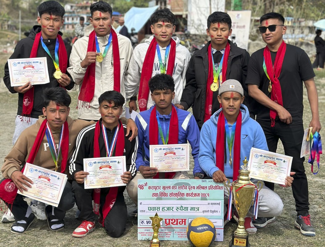 विरुवा–२ ले जित्याे करापुटारमा आयोजित वडा स्तरीय पुरुष भलिबल २०८१ को उपाधि