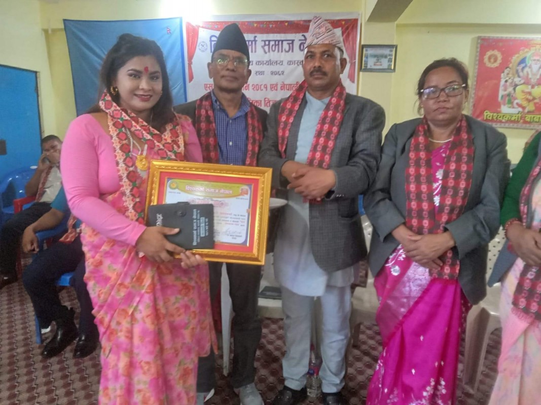 त्यस्तै विश्वकर्मा सेवा समाज नेपालले पनि उनले लोक दोहोरीको क्षेत्रमा पु¥याएको महत्वपूर्ण योगदानको उच्च कदर गर्दै २०८० सालको एसइइमा उत्तीर्ण विद्यार्थीहरुलाई सम्मान र तीजको दर खुवाउने कार्यक्रमको अवसरमा दोसल्ला र सम्मान पत्रले सम्मान गरेको हो ।