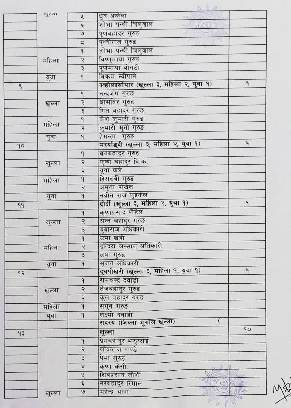 जिल्ला भूगोल खुला सदस्यतर्फ १० पदका लागि १३ जनाको उमेदवारी परेको छ । खुल्ला दलित अन्तर्गत ४ पदका लागि ५ जनाको उमेदवारी छ । खुल्ला युवा सदस्य अन्तर्गत ४ पदका लागि ६ जना, खुल्ला जनजाति अन्तर्गत २ पदका लागि २ जना, जिल्ला खुला सदस्य (समावेशिता)तर्फको ५ पदका लागि १० जनाको उमेदवारी परेको छ । त्यस्तै खुला दलित अन्तर्गत खुला २ र १ महिला गरी ३ सदस्य पदमा हुने निर्वाचनका लागि खुलातर्फ २ जना र महिलातर्फ २ जनाको उमेदवारी परेको छ ।