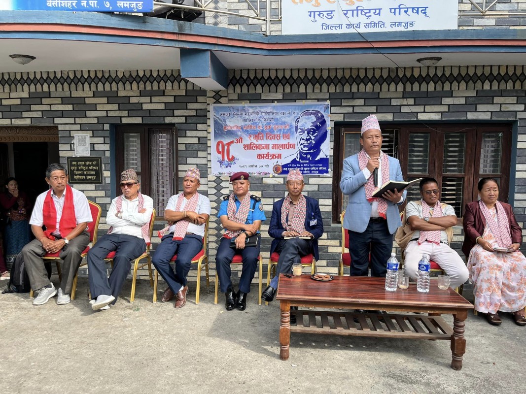 यता बेसीशहरमा आयोजित कार्यक्रममा जिल्ला समन्वय समिति लमजुङका प्रमुख पूर्णबहादुर ग ुरुङ, प्रमुख जिल्ला अधिकारी बुद्धबहादुर गुरुङ, क्व्होलसोंथार गाउँपालिकाका अध्यक्ष सुर्यप्रसाद गुरुङ, बेसीशहर नगरपालिकाका उपप्रमुख पद्मा गुरुङ लगायतले स्व. गुरुङको जीवनीमाथि प्रकास पार्दै उनीप्रति श्रद्धाञ्जली अर्पण गरेका थिए ।