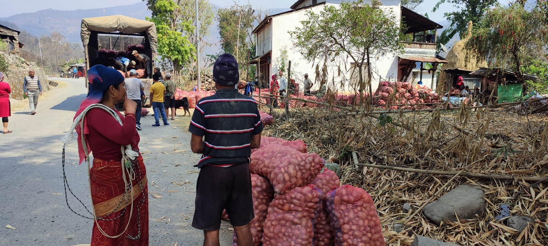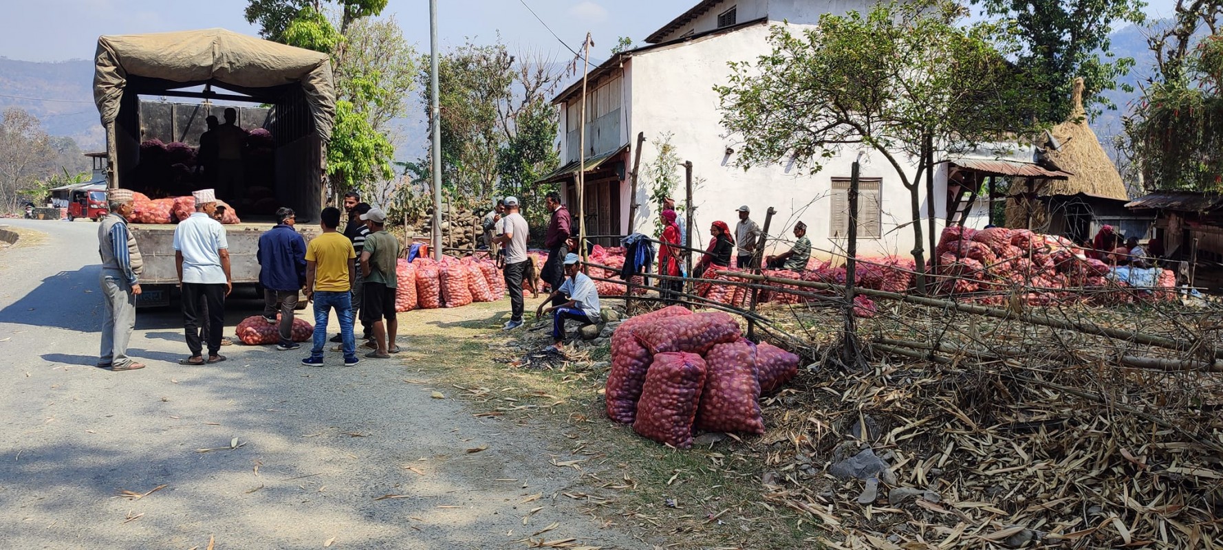 कृषि ज्ञान केन्द्र लमजुङका प्रमुख सुदिप खतिवडाले समुदायस्तर प्रशाेधन याेग्य कृषि उत्पादन आयाेजना अन्तर्गत लमजुङकाे ७ सय ६८ राेपनी जमीनमा आलु खेती गरिएकाे र किसानहरुको मेहनत र कृषि प्राविधिकहरूकाे सहयाेगले आलुको उत्पादन निकै राम्रो भएको बताए । उनले राईनासबाट सोमबारसम्म ६० मेट्रिक टन आलु बिक्री भइ निकासी भएको जानकारी दिए । उनले ज्ञान केन्द्रले किसानहरुलाई ७५ प्रतिशत अनुदानमा खुमल उज्वल र खुमल उपहार नामक आलुको बीउ उपलब्ध गराउनुका साथै, सिञ्चाइ र पूर्वाधारमा ८५ प्रतिशत, यन्त्रीकरणमा ७५ प्रतिशत र ढुवानीमा ५० प्रतिशत सहयोग गरिरएकाे बताए ।