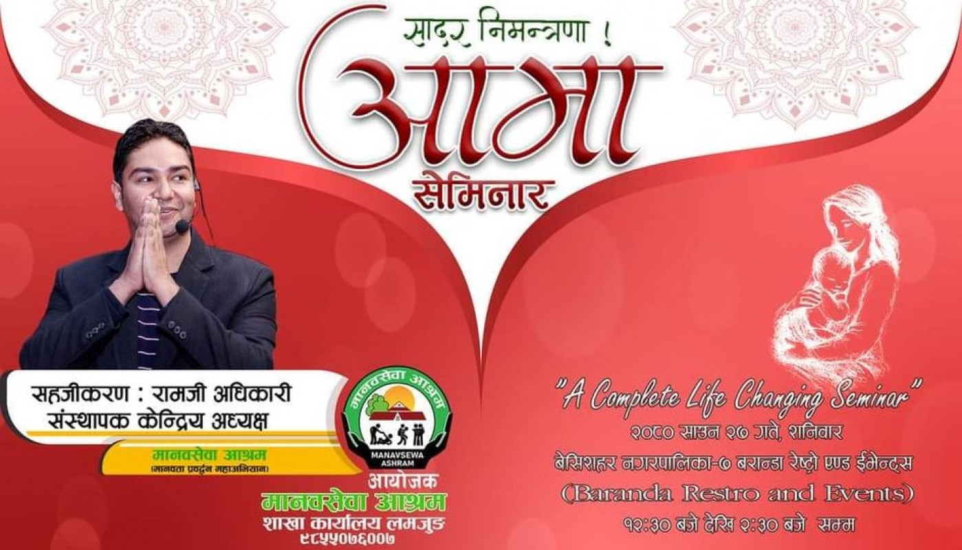 बेसीशहर । आगामी २०८२ सालभित्र सहयोगापेक्षी वा सडक आश्रित मानवमुक्त राष्ट्र निर्माण गर्ने संकल्प लिएकाे मानव सेवा आश्रमले साे संकल्प पूरा गर्न अघि बढाएकाे राष्ट्रव्यापी रुपमा मानवता प्रबर्द्धन कार्यक्रम अन्तर्गत लमजुङमा आमा सेमिनार कार्यक्रम हुने भएकाे छ ।