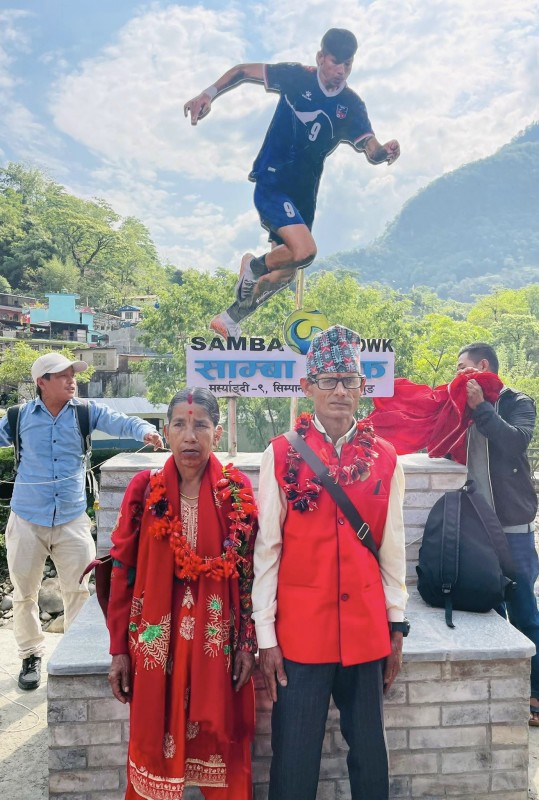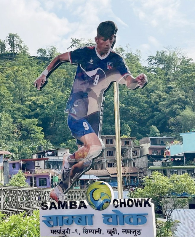 सोमबार आयोजित एक विशेष समारोहबीच मर्स्याङदी गाउँपालिकाका अध्यक्ष अर्जुन गुरुङले साम्बाको स्तम्भ उद्घाटन गर्दै उक्त चोकलाई साम्बा चोक घोषणा गरेका हुन् । नेपाली महिला राष्ट्रिय फुटबल टिम तथा नेपाल एपीएफ क्लबकी खेलाडी साम्बाको सम्मानमा ‘साम्बा चोक’ नामकरण गरि उनको तस्वीर अंकीत स्तम्भ निर्माण गरिएको गाउँपालिकाका अध्यक्ष गुरुङले बताए । फुटबल खेल्नकै लागि जन्मिएकी असाधारण क्षमताकी साम्बाले जन्मस्थल र देशकै गरिमा उचो बनाएकाले उनको सम्मानमा साम्बाचोक नामाकरण गरि साम्बाको तस्वीरसहितको स्तम्भ बनाइएको अध्यक्ष गुरुङले बताए ।