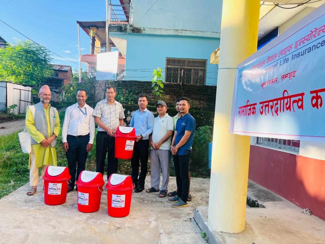 साताैं बार्षिकाेत्सवमा रिलायबल इन्स्युरेन्सद्वारा सुन्दरबजारमा डस्टविन वितरण