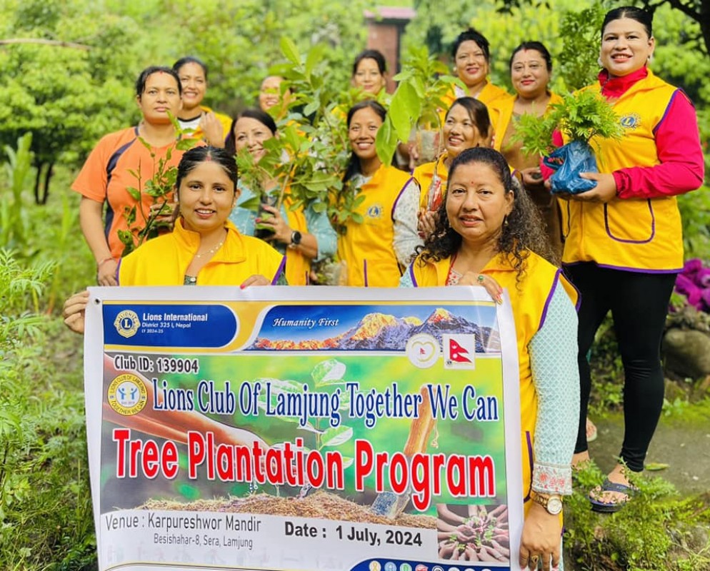 कार्यकाल शुरू भएकाे पहिलाे दिन लायन्स क्लवले गर्याे बृक्षाराेपण