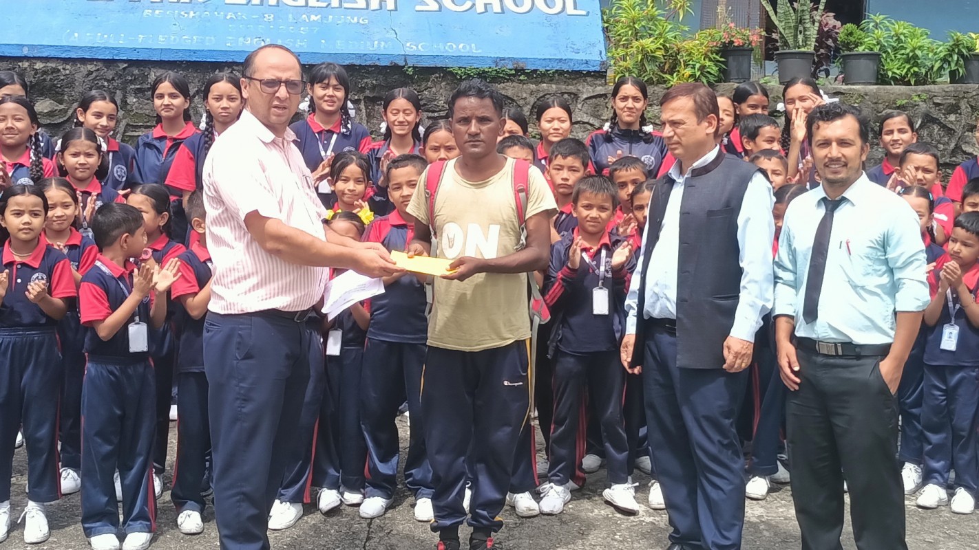मृगाैला राेगी दुलाललाइ ल्याण्डस्टारका शिक्षक विद्यार्थीकाे सहयाेग